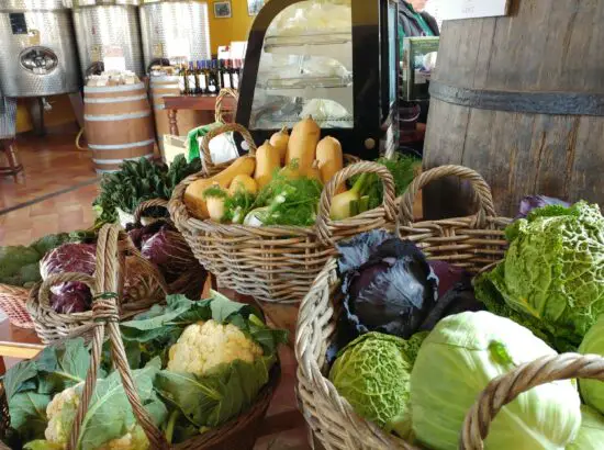 We did a tasting of three wines and especially loved the orange wine! The farm tour costs €10, and the wine tasting is €15, which includes local snacks like olives, cheese, bread, and ham. We also bought wine, jam and grape juice. They also sell their farm produce including eggplants, peppers and onions. It’s also interesting to see how the local people buying their wines with their own containers (it only costs about 1.9-2.2 per L)!