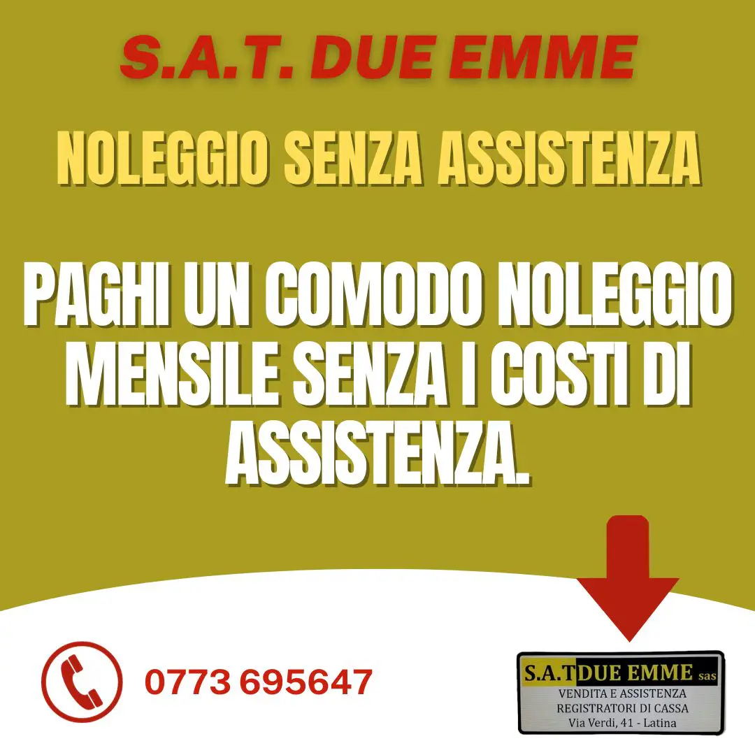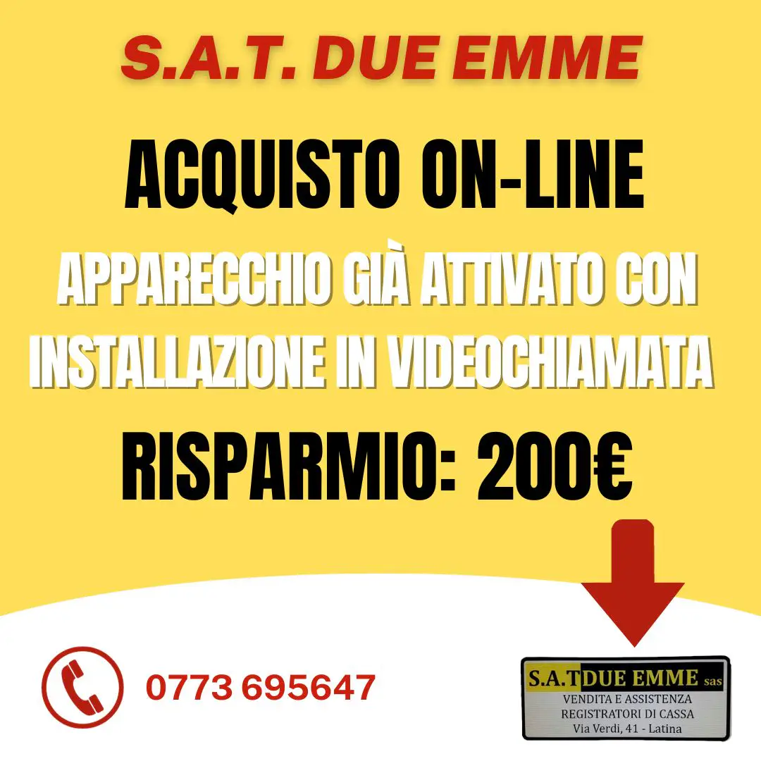 S.A.T. DUE EMME è il partner ideale per l'automazione del punto cassa della Vostra attività commerciale. Dal 1989, ci siamo specializzati nell'offrire servizi completi e professionali nel campo dei Registratori di Cassa Telematici, Stampanti Fiscali Telematiche, Pos System Touch Screen, Software Gestionale Applicativo, Stampanti Ricevute Termiche e Comande, Rotoli Termici Omologati, Terminali Portatili, Scanner Barcode, Rilevatori Verifica Banconote False, Elimina Code, APP ORDINI LOCALI, VIDEOSORVEGLIANZA e Conta Banconote. Il nostro obiettivo è garantire la massima efficienza al miglior prezzo sul mercato.
