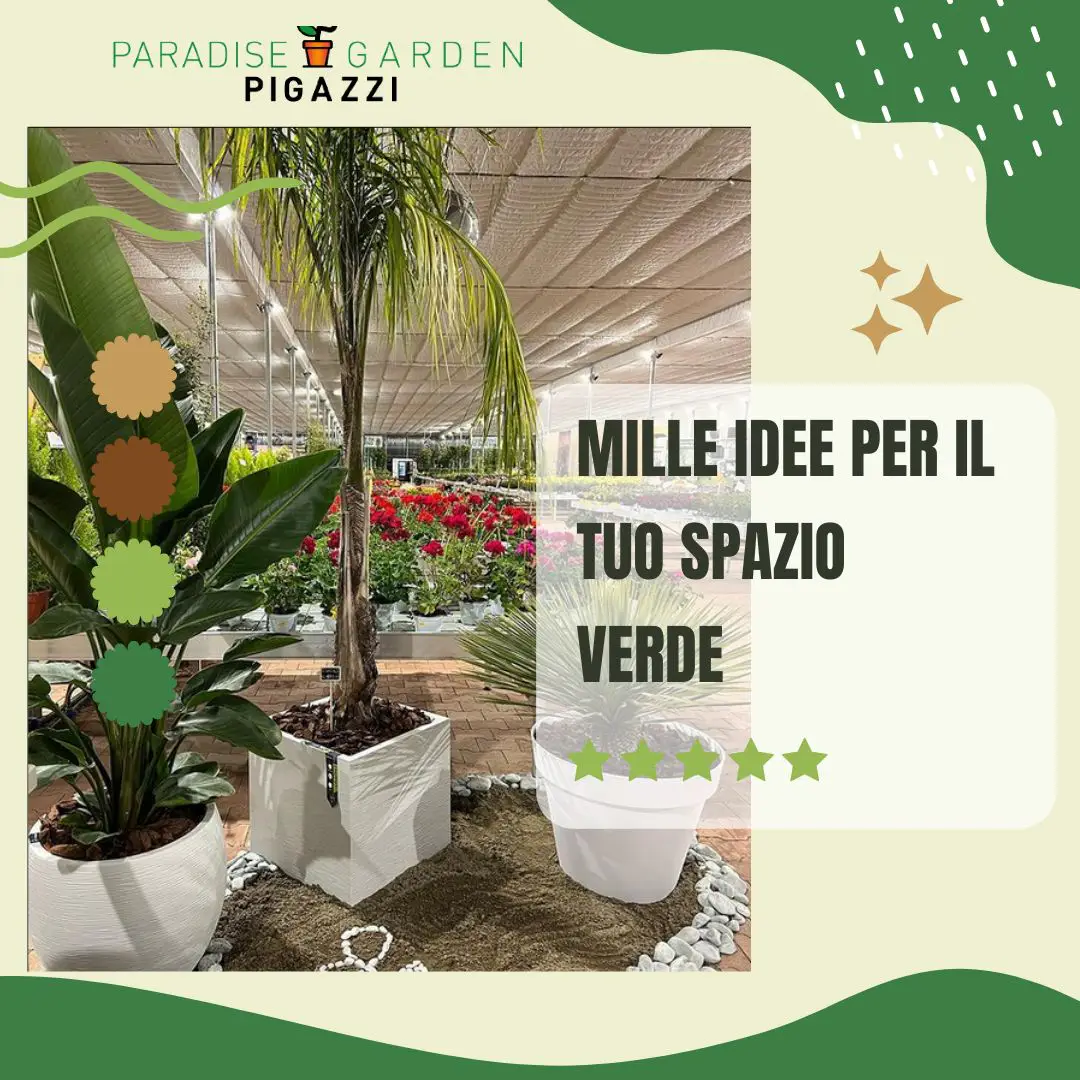 PARADISE GARDEN PIGAZZI viene aperto nel 2021, realizzato a 3 km dall’ azienda di produzione precisamente a B.go Piave frazione di Latina, si estende su un area di 32000 mq divisi in 2500 mq coperti e 1500 esterni. In tutto si contano oltre 1.000 articoli esposti tra piante da interno, piante da esterno, agrumi dalla Sicilia, piante dal Marocco, Spagna e Olanda. Accessori, vasi e terricci delle migliori marche.
