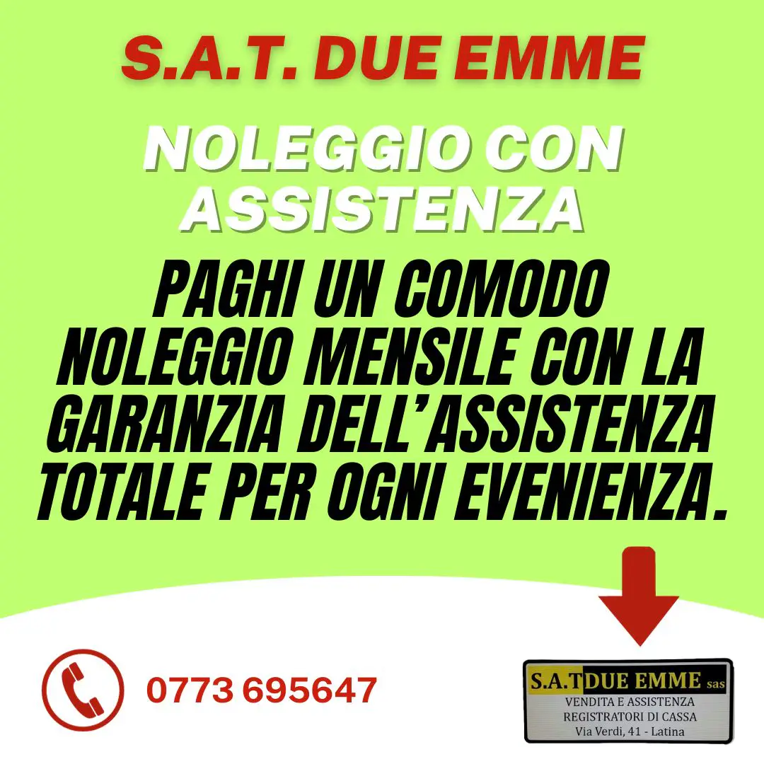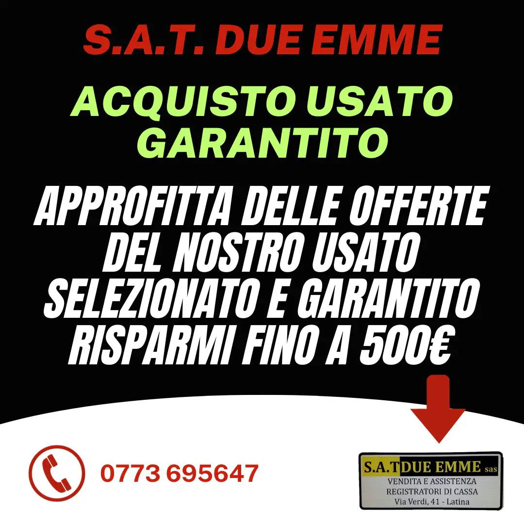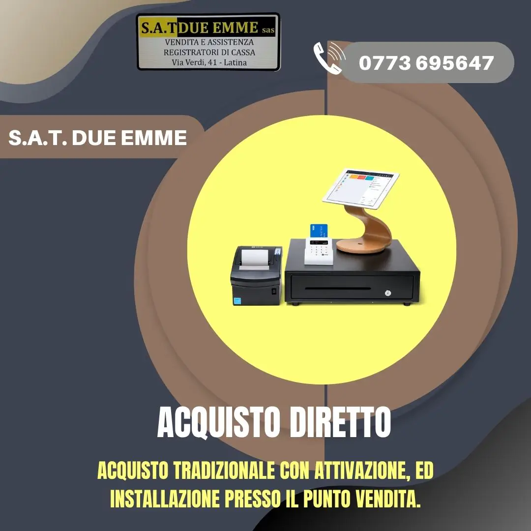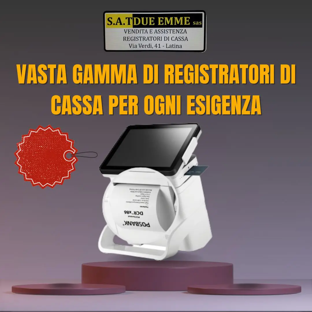 S.A.T. DUE EMME è il partner ideale per l'automazione del punto cassa della Vostra attività commerciale. Dal 1989, ci siamo specializzati nell'offrire servizi completi e professionali nel campo dei Registratori di Cassa Telematici, Stampanti Fiscali Telematiche, Pos System Touch Screen, Software Gestionale Applicativo, Stampanti Ricevute Termiche e Comande, Rotoli Termici Omologati, Terminali Portatili, Scanner Barcode, Rilevatori Verifica Banconote False, Elimina Code, APP ORDINI LOCALI, VIDEOSORVEGLIANZA e Conta Banconote. Il nostro obiettivo è garantire la massima efficienza al miglior prezzo sul mercato.
